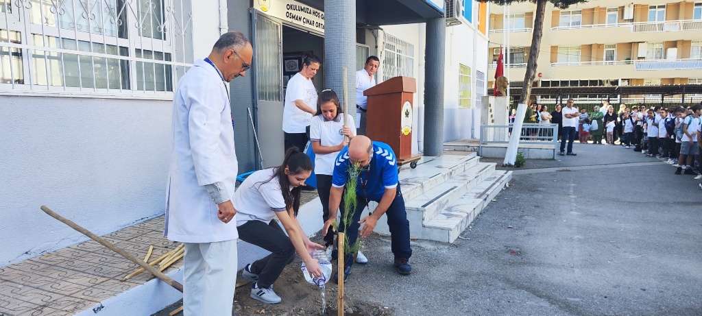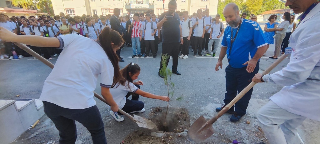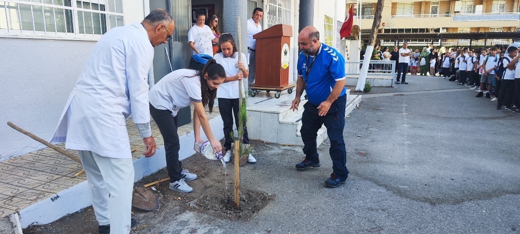 Bu kapsamda okul bahçesinde fidan dikim etkinliği yapıldı.